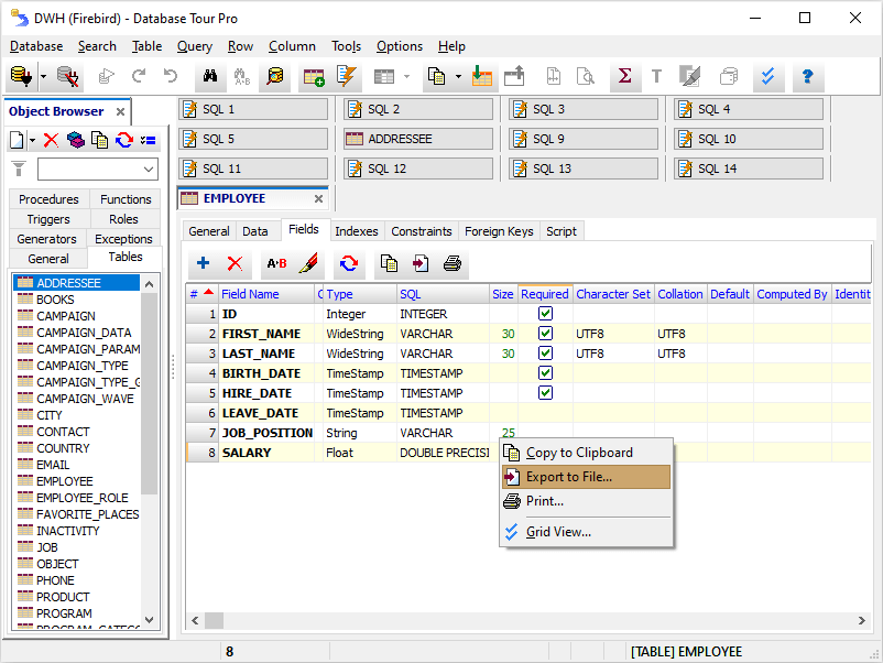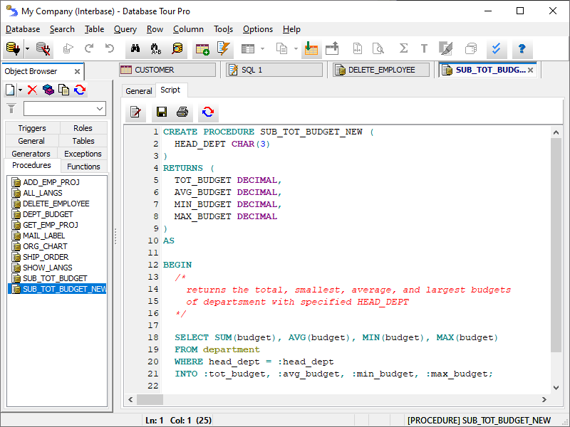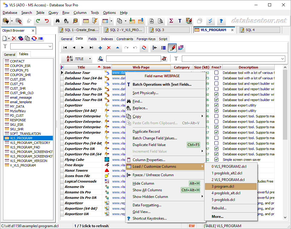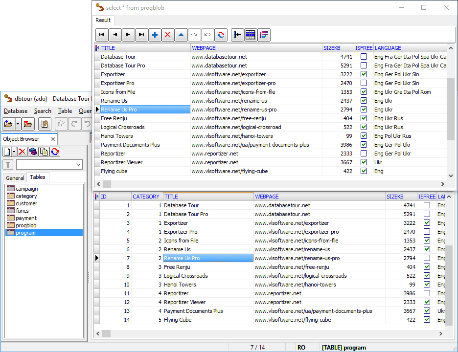The screenshots demonstrate how Database Tour software works with databases. Scroll down to see different database areas where it can be applied.