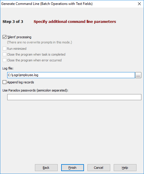 The great advantage of this tool is that the command line or action file can be easily built automatically from the GUI using the interface very similar to GUI interface of the corresponding operation: