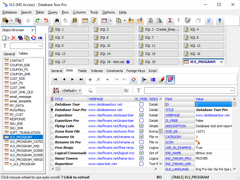Database Tour shows data in enhanced database grids, which allow viewing and editing data in the most convenient way.