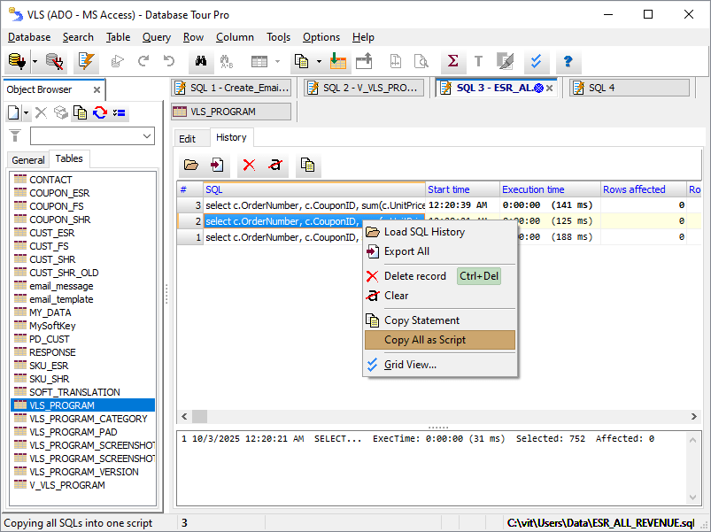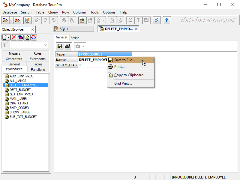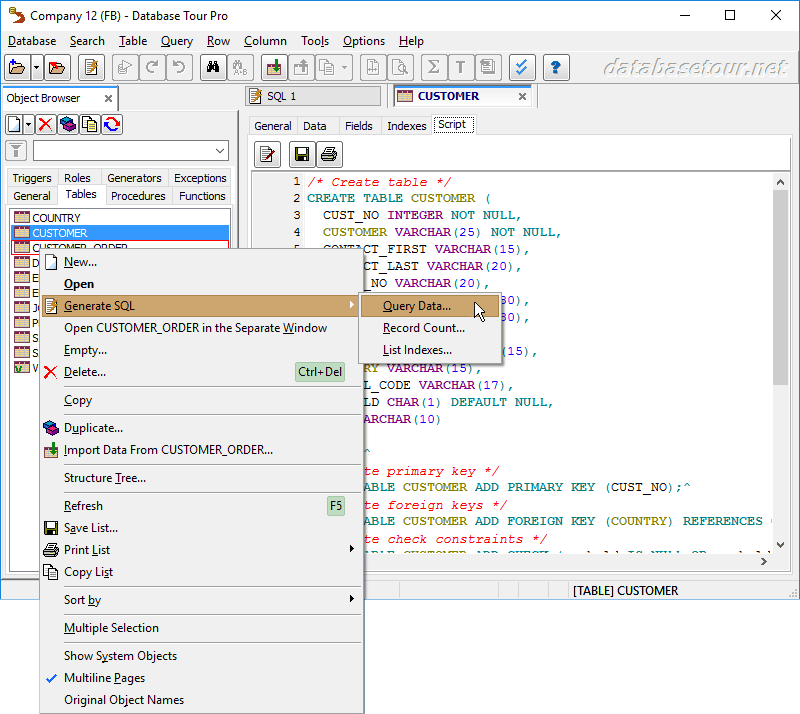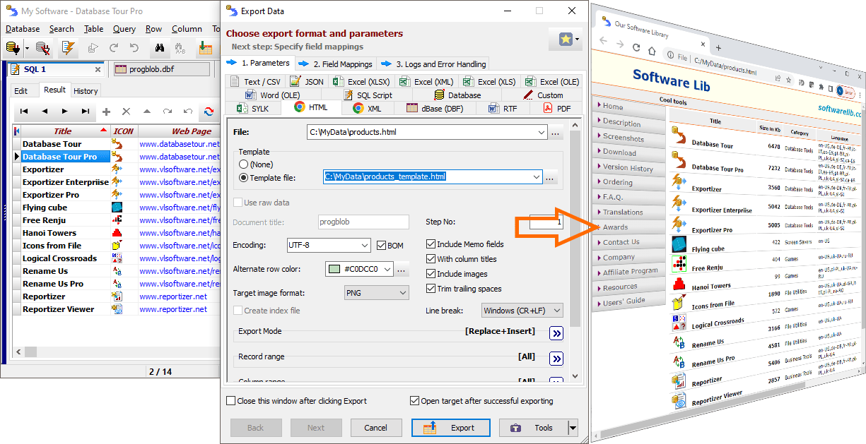 The screenshots demonstrate how Database Tour software works with databases. Scroll down to see different database areas where it can be applied.